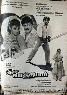 Chinna Vathiyar (transl.Young Teacher) is a 1995 Indian Tamil-language science fiction comedy film, directed by Singeetam Srinivasa Rao. The film stars Prabhu in a dual role, Khushbu, Ranjitha, Goundamani, Senthil and Nizhalgal Ravi. Music was by Ilaiyaraaja and lyrics were by Vaali. The comedy subplot was inspired by Crazy Mohan's play Madhu +2. The film was successful at the box office.[2]