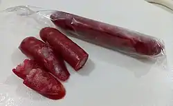 Chorizo de Macao, sometimes called Chinese Chorizo or Longaniza Macau, is a Filipino dry pork sausage. The ingredients of Chorizo de Macao is identical to other Filipino sweet longganisas (longganisa hamonado), except for its dry texture and its use of star anise, aniseed, or anise liqueur (anisado), which gives it its distinctive aroma and its name. It is commonly used in Chinese Filipino dishes like pancit Canton and siopao. It is sometimes confused with and used in place of Chinese sausage.[1][2][3]