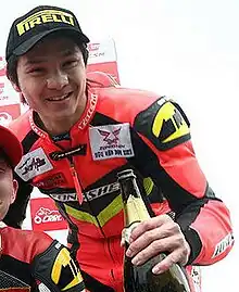 ![]() Chow Ho-Wan celebrates his podim finish in the China Superbike Championship in 2008. | |||||||||||||||||||||||||||||||||||||||||||||||