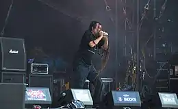 Chris Barnes (born December 29, 1967) is an American death metal vocalist. He is noted for his low growl vocals and explicitly violent lyrics. He was the co-founder, original lead vocalist and songwriter of Cannibal Corpse from 1988 to 1995, later founding and performing as part of Six Feet Under, and has appeared on Torture Killer's second album Swarm! Barnes designed the original Cannibal Corpse logo, the Six Feet Under logo and also created the artwork for Warpath, released in 1997.