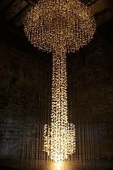 In addition to ephemeral works, some of Drury's lasting pieces include "cloud chambers", darkened caverns constructed of local rock, turf, or other materials. Each chamber has a hole in the roof which serves as a pinhole camera; viewers may enter the chamber and observe the image of the sky and clouds projected onto the walls and floor. He has made several around the world, with his latest, Horizon Line Chamber, constructed with master craftsman Andrew Mason, opening in 2019 at Morecambe Bay as part of the Headspace to Headlands Heritage Lottery Commission.[5]