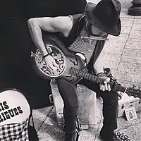 ![]() Chris Rodrigues busking in Asheville NC 2013 | |