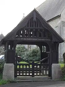The lych-gate was built in 1906. It is not in alignment with the church (as is normal with such structures) as it was built with the assumption there would be a further extension to the church (which was never built) to bring it into alignment. The wood used reputedly came from H.M.S. Thunderer, which fought at the Battle of Trafalgar.