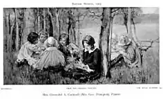 Cockerell modelled occasionally for her husband: his Mother and Child shows her with their infant son Meredith, and was exhibited at the 1897 Venice Biennale and the Paris Exposition Universelle in 1900.[10] Her husband also featured in her work: one of her smaller paintings shows him sitting by a window, working on his sculpture, watched by his young son.[11]