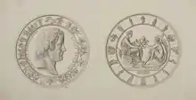 In 1835, he was made an associate member (agreeret) of the Academy and received as the subject of his admissions work a medal commemorating the homecoming of Bertel Thorvaldsen's works. The medal in silver would in the future be awarded to artists for exceptional contributions to the annual Charlottenborg exhibitions. Christensen was based on the model for the medal admitted as member of the Academy in 1838, but his work with the stamps was hit by a number of accidents and it had therefore not yet been completed when the Exhibition Medal was awarded for the first time to Martinus Rørbye in 1839. In 1842, it was finally possible to present Thorvladsen with the first medal in gold.[1]