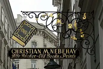 In 1947, Nebehay founded the Christian M. Nebehay Company (gallery, art shop and antiquarian bookstore) located in Vienna's first district. For decades he took over a leading role in the art and antique trade far beyond Austria.[16] The shop continued even after his death. A former chairman of the Austrian League of Antiquarian Booksellers [Verband der Antiquare Österreichs] once referred to it as "the most important still active antiquarian bookstore of the 'Old Continent Europe'".[17] Nebehay, who served as president of the International League of Antiquarian Booksellers,[18] also founded the Austrian League of Antiquarian Booksellers, which he headed for over two decades, and the Society of Friends of the Albertina. Nebehay was able to make numerous acquisitions in the interest of Austrian art, e.g. he initiated the purchase of the manuscript of Anton Bruckner's Third Symphony on behalf of the Austrian National Library.[18] He also founded the Egon-Schiele-Museum in Tulln, Lower Austria.[19]