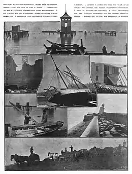 In Sweden, it hit Scania, parts of southern Kronoberg County and the west coast. Around 50 fishermen were killed, while very few people on land were killed. Material damages, measured in millions of Swedish crowns, were reported. The storm destroyed, among other things, open-air baths in Varberg, Mölle and Malmö (one in Ribersborgsstranden – the Ribersborgs open-air bath – and one in Sibbarp), and the Örgryte Church tower spire fell off.