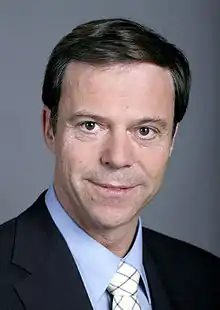 Christoph Mörgeli[1] (/mɒɡɛlj/ born 16 July 1960) is a Swiss medical historian, journalist and former politician. He served as a member of the National Council (Switzerland) from 1999 to 2015 for the Swiss People's Party.[2] He previously also served as a member of the Cantonal Council of Zürich between 1997 and 1999. Mörgeli announced to run for office again in the 2019 Swiss federal election but was not elected again.[3]