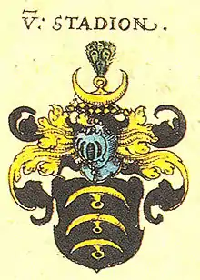 Christoph von Stadion was born in Schelklingen in mid-March 1478, the son of Nikolaus von Stadion (d. 1507) and his wife Agatha von Gültlingen (d. 1504).[1] In 1490, he began his studies at the University of Tübingen, receiving a bachelor's degree in 1491 and a master's in 1494.[1] He then studied at the University of Freiburg, moving on to the University of Bologna in 1497.[1] Finally, he studied at the University of Ferrara, from which he received a doctorate in law.[1]