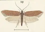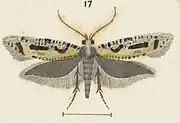 - 1 2 3 Edward Meyrick (May 1886). "Descriptions of New Zealand Micro-Lepidoptera". Transactions and Proceedings of the New Zealand Institute. 18: 176–177. ISSN 1176-6158. Wikidata Q109405465.