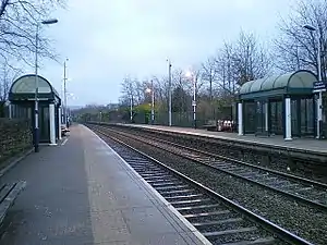 Church & Oswaldtwistle railway station serves both the village of Church and the town of Oswaldtwistle, in Lancashire, England. The station is 5+13 miles (8.6 km) east of Blackburn railway station, on the East Lancashire Line operated by Northern.