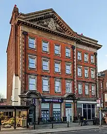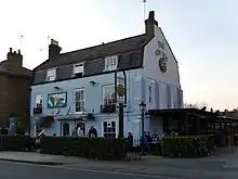 Church Road, Barnes is a street in Barnes in the London Borough of Richmond upon Thames.[1] It runs from the junction between Rocks Lane (heading south towards Barnes Common and Barnes Station) and Castlenau (running northwards to Hammersmith Bridge) by the Red Lion pub, westwards to the end of Barnes High Street. It takes its name from the St Mary's Church, a Church of England building dating back to the twelfth century. Also located on the street are the Sun Inn and the early eighteenth century The Homestead, both Grade II listed.[2][3] Barnes Green runs on the south side of the street. The Olympic Studios were located in the street, notable for the records that Jimi Hendrix made there.[4]