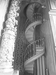 The greatest characteristic of the internal decoration of La Compañía de Quito is its very Baroque forms in carved cedar wood, polychrome and bathed in 23-carat gold leaf on a red background.[7][4] The main altarpiece, in the apse, and the richly decorated pulpit stand out above all.