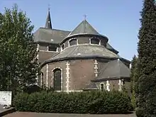 The Church of Saint Sulpice (French: Église Saint-Sulpice; French pronunciation: [sɛ̃sylpis]) is a Catholic church in Jumet, a neighborhood of the Belgian city of Charleroi in Hainaut Province, Wallonia.[1] It is dedicated to Sulpitius the Pious. The oldest material traces of a religious building on the site date back to the 10th century. Three churches built there before the current structure were identified during excavations carried out in 1967. The current classical building was built between 1750 and 1753 by an unknown architect.[2] The brick and limestone church is uniform in appearance. It is composed of six bayed naves flanked by aisles, a three-sided transept, and a choir with a polygonal ambulatory with a sacristy in its axis. The chamfered base is in dimension stone on the frontage and in rubble stones and sandstone for the rest of the base. All of the building's angles are toothed and every second stone is bossed. The church has been listed as a Belgian cultural heritage site since 1949.