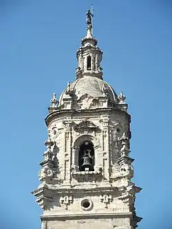In 1774 the construction of the present Belfry Tower was begun by Gabriel de Capelastegui, replacing an earlier structure. The tower has a quadrangular body that rises near the central roof. Above it is the belfry crowned by a dome and a lantern, and with auctions in the weathercock. It has a shining Baroque dieciochesco style, being one of the best examples of the whole Basque Country. The weathercock dates back to 1775, specifically it was made on 7 December 1775.