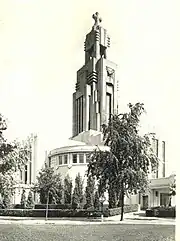 The Church of St. Augustine is a continuation of a series of reinforced concrete churches that the brothers Auguste and Gustave Perret had begun in Le Raincy, France, in the 1920s.[1] The idea was daring because this material had not yet proven itself. The bulk of the work was completed in two years (1933–1935).[2] On Easter Monday (25 March 1935), the church was consecrated by Cardinal Van Roey and opened to worship. In fact, completion work would continue until 1950.[7]