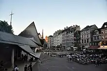 ![]() Rouen's old market square with the Church of Saint Joan of Arc de minimis on the left | |