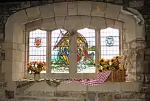 Among the stained glass windows are those by the studio of Charles Eamer Kempe and Archibald Keightley Nicholson[2] which variously depict the legend of St Sabinus being shipwrecked at Woolacombe Sands and which was installed in 1969 in memory of Royal Marine commando Ernest John "Jack" Watts (1925–1946); the window dedicated to the Colville Family was installed in 1969; the War Memorial Window installed in 1919 and produced by the Kempe studio; the Nutman Window is the work of Archibald Nicholson and is dedicated to William John Nutman, captain of the SS Aidar, who received the Albert Medal First Class from Queen Victoria for his great gallantry in saving the life of an injured crewman during a storm in the Mediterranean Sea on the night of 19 January 1896.[7]