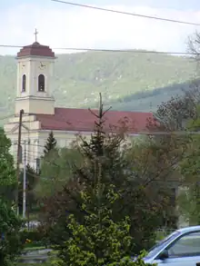 This monumental church dominates its surroundings and is characterised by its beautiful architecture and interior. It is a single-aisle building with segmental closure of the presbytery. The ground plan is longitudinal. The sanctuary is a gently curved five-flanks closure to which adjoin two aisle sacristies. The main face of the building attaches a tower and is divided to four pilasters. On the top is a massive cross. In the middle of its frontal face is the main portal „DEO UNI ET TRINO” which means „To triunity God”. On either side of the main gate in masonry are large sculptures of Saints Cyril and Methodius.