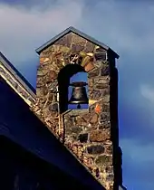 The foundation stone for the church was laid by Prince Henry, Duke of Gloucester, on 16 January 1935, in the presence of the bishop of Christchurch, Campbell West-Watson, and vicar Davies.[5] The building committee had decided that the church should blend into the environment. The grounds surrounding the church were deliberately left with their native vegetation. The church was clad in local stone and lichen was left on the stone to give it a natural look. The structure itself was made from concrete, with the stones as cladding. Fred Trott won the construction tender, but the work was carried out by Les Loomes and Doug Rodman; the latter was engaged to Trott's daughter. The stonework was done by Christchurch stonemason Jack Miller. A Christchurch firm installed the hardwood shingles.[4] Audrey Barker had died in February 1935 aged 21, and the Barker and Sealy families donated the bell for the church, commemorating both Audrey Barker and her grandfather, Edward Sealy, who had explored many of the glaciers in the area during the 1860s.[6] The bell was cast in Christchurch by W. H. Price and Son Ltd.[7] The dedication ceremony was held on 3 August 1935 by the Bishop of Christchurch.[4]