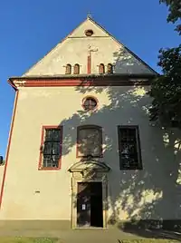 The Capuchins decided to establish a new convent in Opočno in 1673. The Capuchin provincial superior Martinus Freibergensis therefore asked the owner of Opočno dominion for his support. Count Louis Colloredo of Waldsee and his wife Maria Eleonora of Sinzendorfu regarded this idea with favour and already on 30 June 1674 the foundation stone of the new building was laid. The church situated in the north-east part of the newly established square was built between 1676 and 1678 by Capuchin architect Bruno from České Budějovice and Italian builder Bernardo Minelli.[1] First Capuchins came to Opočno on 23 May 1677, but the church was completed the following year. The Capuchins were supposed to strengthen the Catholic faith among the still predominantly Protestant inhabitants of Opočno dominion.[2]