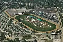 Churchill Downs is a horse racing complex located on Central Avenue in south Louisville, Kentucky, United States, famed for hosting the annual Kentucky Derby. It officially opened in 1875 and was named for Samuel Churchill, whose family was prominent in Kentucky for many years.[1] The first Kentucky Derby, a Thoroughbred sweepstakes and part of today's horse racing Triple Crown, and the first Kentucky Oaks were held in the same year. Churchill Downs has also hosted the renowned Breeders' Cup on nine occasions, most recently on November 2 and 3, 2018.[2]