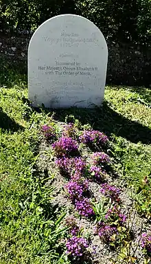 In her last years she suffered from Alzheimer's disease. She died on 9 March 1997 at St Thomas' Hospital in London.[1] She was a lesbian: her partner of almost 70 years, Jacqueline Hope-Wallace (died 2011), who had a career in the British civil service, survived her.[1][22][lower-alpha 4] Wedgwood and Hope-Wallace together owned a country house near Polegate in Sussex.[7] Both came from musical families. Wedgwood's father was a cousin of Ralph Vaughan Williams and the dedicatee of his London Symphony.[2] Hope-Wallace's brother Philip was for various periods music and drama critic of The Times, Time and Tide, and the Manchester Guardian. She edited a collection of his writings as Words and Music (1981) for which Wedgwood wrote the introduction.[26] In 1997, Hope-Wallace donated a 1944 oil portrait of Wedgwood by Sir Lawrence Gowing to the National Portrait Gallery, London.[27]