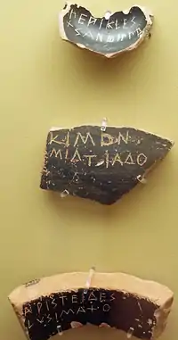 This insulting rebuff caused the collapse of Cimon's popularity in Athens. As a result, he was ostracised from Athens for ten years beginning in 461 BC.[15] The reformer Ephialtes then took the lead in running Athens and, with the support of Pericles, reduced the power of the Athenian Council of the Areopagus (filled with ex-archons and so a stronghold of oligarchy).