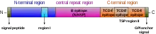 Circumsporozoite protein (CSP) is a secreted protein of the sporozoite stage of the malaria parasite (Plasmodium sp.) and is the antigenic target of RTS,S and other malaria vaccines.[1] The amino-acid sequence of CSP consists of an immunodominant central repeat region flanked by conserved motifs at the N- and C- termini that are implicated in protein processing as the parasite travels from the mosquito to the mammalian vector.[2] The amino acid sequence of CSP was determined in 1984.[3][4]
