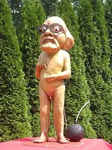 Citizen Włapko (Citizen Skimmer, Polish: Obywatel Włapko) is the name of a 1.10 meter-high sculpture symbolizing a corrupt official.[1] The satirical figure shows a naked boy with the head of a mature man wearing glasses with a mustache and beard. His right forefinger pointing to his left palm indicates a request for money. There is a bomb next to his left foot, which symbolizes the explosive nature of the request, and the nudity symbolizes the whole, "naked" truth.