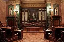 The municipal council (Consell Municipal) is the body formed by the elected councillors of the Ajuntament. The plenary meetings (Ple) are held at the "Carles Pi i Sunyer" Hall. It is formed by the municipal councillors, elected through closed party list proportional representation. 41 councillors are currently elected on the basis of the population of the municipality. Councillors are grouped in Municipal Groups on the basis of their political filiation. The Municipal Council can also meet in Commissions (akin to parliamentary committees).[4]