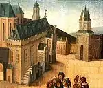 After large fires in 1347 and 1351, William I, Duke of Bavaria who was also the Count of Holland at that time, donated the remains of the Gravenzaal to the city's municipality. A new building was built there. The central square building dates from the Middle Ages, but the distinctive façade of the building was designed by architect Lieven de Key and built from 1602-1604. The way it originally looked can be seen in a painting from 1460 by the Master of Bellaert. Originally the city hall was just the front of the building, and the rear cloister belonged to the Dominican brotherhood. After the Protestant Reformation this came into the possession of the city council and it is now a large complex with offices and meeting rooms. Both the Frans Hals Museum and the Haarlem Public Library originally were located in the city hall.