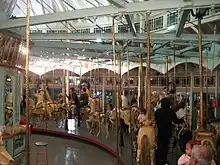 The carousel, originally mule-driven, opened in 1897, and was updated to a mechanical carousel in 1906. The miniature train opened in 1898 and the original golf course was built in 1902. A racetrack opened February 11, 1905, but closed only 3 years later in 1908. In the first two decades of the 20th century, numerous improvements were undertaken by the City Park Improvement Association. The Peristyle was constructed in 1907 and the Isaac Delgado Museum of Art, later renamed the New Orleans Museum of Art, opened in 1911. Two years later, in 1913, the Casino building opened offering refreshments. The Casino building is currently occupied by Cafe Du Monde. The Popp Bandstand was constructed in 1917 and dedicated on July 4. The Irby swimming pool was built in 1924. City Park's governing board also accomplished a number of large land acquisitions, such that the park assumed its current boundaries.[11]
