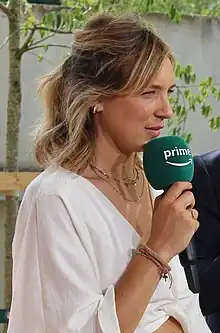 In September 2017, she was chosen to co-host the Stade 2 sport show with Matthieu Lartot on France 2.[8] She started on the show in January 2018 after her maternity leave.[9] In April 2018, she left Stade 2 in order to host Tout le sport on France 3 during the weekends.[10] In August 2018, she left France Télévisions after the 2018 European Athletics Championships where she was interviewing athletes after their events.[11]