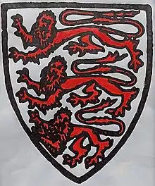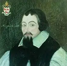 The McGrath family are armigerous in Ireland and in the United Kingdom of Great Britain and Northern Ireland. The earliest recorded McGrath Arms are that of the McGrath Chieftain of Ulster. These are recorded as 'argent, three lions passant gules' in the book Irish Pedigrees: The Stem of the Irish Nation by John Hart[18] and in Irish Families, Their Names, Arms and Origins by Edward MacLysaght.[19] However, the McGrath Arms are recorded in a slightly different form in 16th and 17th century sources, including on a portrait of Archbishop Miler McGrath dated 1570. In the portrait (pictured above) the red lions can be seen against a white field on the shield positioned at the top left corner. The lions are passant guardant, that is looking towards the viewer. Above the shield is a bishop's mitre. In 1622, the death of Archbishop Miler McGrath saw him interred in a tomb at the Cathedral Church of St. Patrick at the Rock of Cashel. Above the head of the effigy and on the tomb itself is a carved stone coat of arms. These arms depict three lions passant guardant in the first quarter, the arms of the McGrath Chieftain of Ulster. Miler being a native of the Termonmagrath, the Termon lands of the McGraths of Ulster and son of the McGrath Chieftain, Miler naturally depicts these arms on his coat of arms.