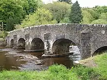 The most prominent structures locally include the settlement's narrow six-arch road bridge (built c.1680), and the nearby Clara Vale Catholic church (built c.1799).[3][4] The church is dedicated to Saint Patrick and Saint Killian and underwent significant renovations in the late 1830s.[5] The local Vale of Clara Nature Reserve is thought to be one of the oldest hardwood forests in Ireland.[6]