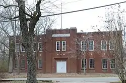 The Clarksville National Guard Armory is a historic former National Guard Armory at 309 College Street in Clarksville, Arkansas. It is a two-story building, finished in brick with restrained Art Deco styling. Its main facade is 10 bays wide, with a projecting section at the center housing two bays on the upper floor, and a double door entrance on the first. The entrance is set in a stepped recess, and it and the windows above are flanked by brick pilasters at the corner of the projection. The building was built in 1930, and served the Arkansas National Guard as a training and storage facility until 1980, after which ownership was turned over to the city.[2]