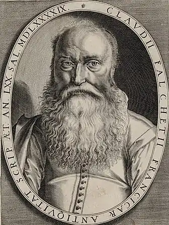 Claude Fauchet (3 July 1530 – January 1602) was a sixteenth-century French historian, antiquary, and pioneering romance philologist.[1] Fauchet published the earliest printed work of literary history in a vernacular language in Europe, the Recueil de l'origine de la langue et poësie françoise (1581).[2][3][4][5] He was a high-ranking official in the governments of Charles IX, Henri III, and Henri IV, serving as the president of the Cour des monnaies.