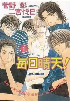 Clear Skies! (Japanese: 毎日晴天!, Hepburn: Mainichi Seiten!) is a Japanese manga series written by Akira Sugano and illustrated by Etsumi Ninomiya. The manga is licensed in North America by Digital Manga Publishing under its Juné imprint, which released the first volume on 28 August 2008.[1] It's about four brothers living together, when one of the brother's old high school flame turns up and claims that he's married to the brothers' wild older sister, who is nowhere to be found, bringing his adopted son.