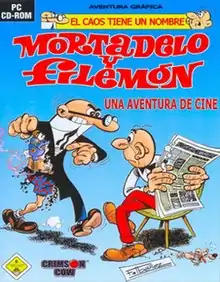 Mortadelo y Filemón: Una Aventura de Cine is a 2000 adventure video game for Windows. It was re-released in Spain in November 2003, and in Germany in 2004 by Crimson Cow, and was developed by Spanish studio Alcachofa Soft.[1][2][3] The game is in German, but was never localized to English.[4] It is the third game in the Mort & Phil adventure game series, following El Sulfato Atómico (1998) by Alcachofa and La Máquina Meteoroloca (1999) by Vega Creaciones Multimedia.