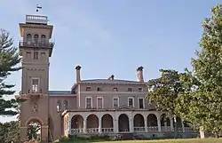 ![]() "Clifton Mansion", original home of Capt. Henry Thompson, (1774–1837), later purchased 1838 by Johns Hopkins, (1795–1873), renovated/redesigned around 1858 by architectural team of Niernsee and Neilson, photo taken August 2011 | |