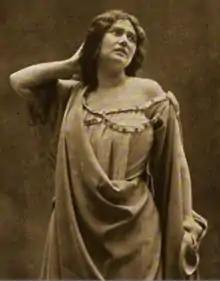 Bressler-Gianoli starred in the title role of Bizet's Carmen in Brussels (1895) and Paris (1900).[1] Her most successful appearance in the role was at the Manhattan Opera House in New York City in 1906 and 1907,[4] giving what The New York Times called "a striking and original performance...[her portrayal has] the allurement of sheer wickedness and all the wiles and treacheries that wickedness suggests".[5] During that run, Bressler-Gianoli was injured on stage, stabbed by Charles Dalmorès with a prop blade that was sharp enough to draw blood.[6] She went on stage with a bandaged arm for the next performance.[7] Also in 1907 at the Manhattan Opera House, she played the title role in Ambroise Thomas's Mignon.[8] As part of the Philadelphia-Chicago Opera Company she appeared in Massenet's Thaïs and Charpentier's Louise with Mary Garden and Dalmorès, both in 1911.[9][10]