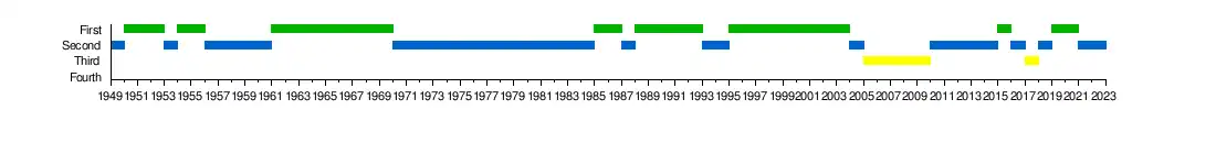 The club again won the second division several years 1953, 1960, 1984, 1987, 1994.