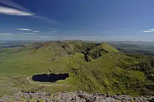 ![]() Devil's Ladder col as seen from Carrauntoohil, with the summit ridge to Cnoc na Toinne behind | |