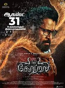 In December, Viacom18 backed out of the project due to unknown reasons, and Lalit Kumar was credited as the sole producer.[17] While it was rumoured to be titled as Amar,[18][19] the makers cleared the rumours by announcing the official title as Cobra on 25 December 2019.[20] The team titled the film "Cobra" because it resembles the pivotal character of snake cobra.[21][22] Gnanamuthu, further revealed in an interview to The Times of India, saying "The protagonist's character and cobra has a link", and revealing anything further would give away key plot details. He added, "Also, since the film is made in Tamil, Telugu and Hindi, I wanted a title that works in all languages. Hence, we zeroed in on Cobra".[23] Speaking to Ananda Vikatan, Gnanamuthu described Cobra as a multi-genre film and includes various genres such as psychological, science fiction, thriller and action. Vikram's character was revealed to be a mathematician and a shape-shifter, who uses mathematics for criminal activities.[24]