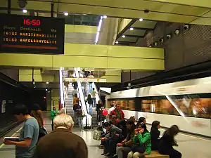 Colón[lower-alpha 1] (Valencian: Colom,[lower-alpha 2] mostly referred as Colón[lower-alpha 2]) is a metro station of the Metrovalencia network in Valencia, Spain. It is situated on Carrer de Colom, in the southeastern part of the city centre. The station is a tall underground structure with a single island platform serving all four lines.