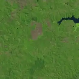 The Colônia crater is a recently confirmed impact crater located in the municipality of São Paulo, Brazil.[1] It is a round bowl-shaped depression, without any obvious central bulge, with a diameter of about 3.6 kilometres (2.2 mi), bounded by a circular ring of hills about 125 metres (410 ft) high relative to the inner depression. Its approximate location is 23°52′15″ South and 46°42′30″ West, 770 metres (2,530 ft) above sea level.[2] The name comes from the town district of Colônia located just north of the feature.