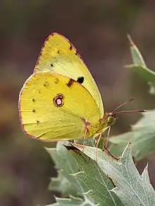 • Colias hyale Colias alfacariensis together with Colias hyale forms a kind of complex. Since the butterflies of both species develop many variations, the two species cannot be differentiated by morphology or on the basis of a genitalic examination . Information about the habitat and the geographical distribution provide only an indication of which of the two species may be involved. A safe distinction is possible only on the completely different caterpillars.