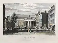 College Street (Irish: Sráid an Choláiste[1]) in Dublin follows the curve of Trinity College. It runs from College Green in the west to Pearse Street in the east.[2][3] It lies in the "Mansion House A" Electoral Division of Dublin.[4] It was described by the prolific engraver Mary Milner as "one of the most spacious of the noble thoroughfares of the Irish metropolis."[5]