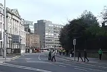 When the Luas Cross City Line was extended in 2017, including a new Trinity Luas stop,[19] up to 30% of buses were removed from the usual route along College Street, including a stop on the Trinity College side. Complaints were aired in the Dáil Éireann about the congestion and overcrowding of buses because of the work, saying the plans were not thought out well.[20]